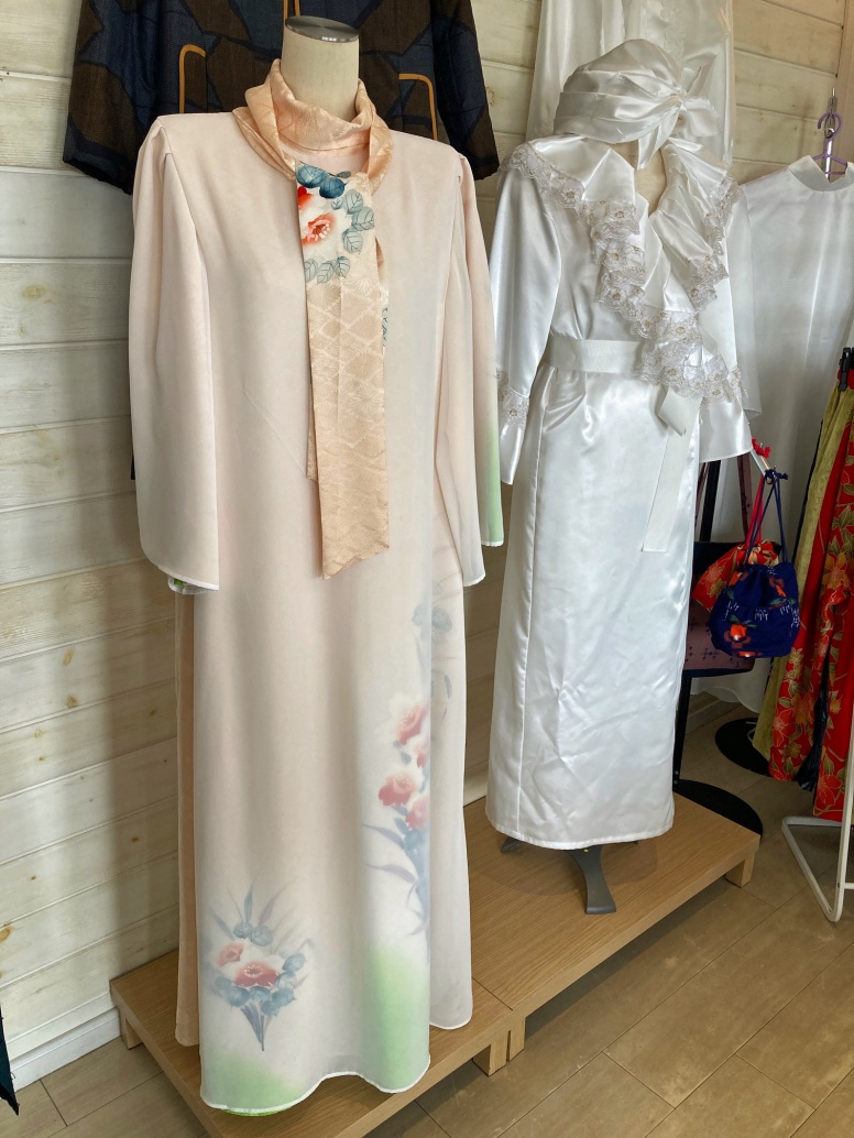 ↑ エンディングドレス なんとこちらは故人にお着せするいわゆる死装束。「白ではなんだかさみしげで・・・」「好きな着物と共に・・・」という声に応えたもの。