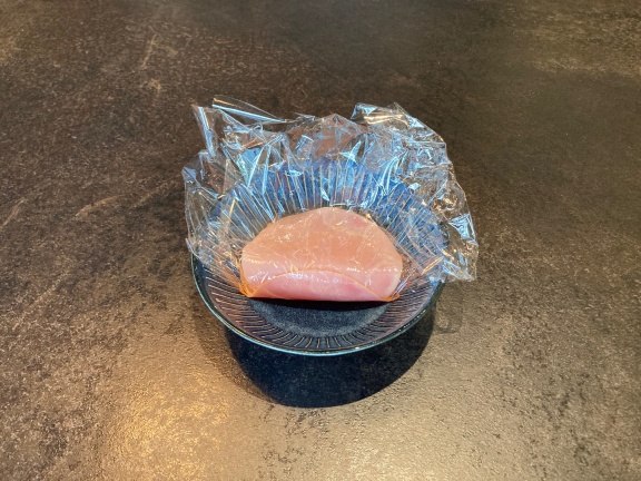 電子レンジ 500ワットで1分50秒加熱 (加熱時間はお使いの電子レンジやお好みで調整してください)