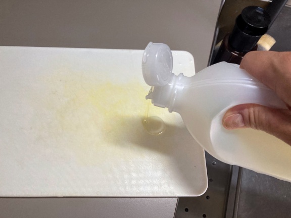 オレンジ色着いちゃったなぁ・・・なんて思ったら、すぐに、そこに置いてある油をひと垂らし。